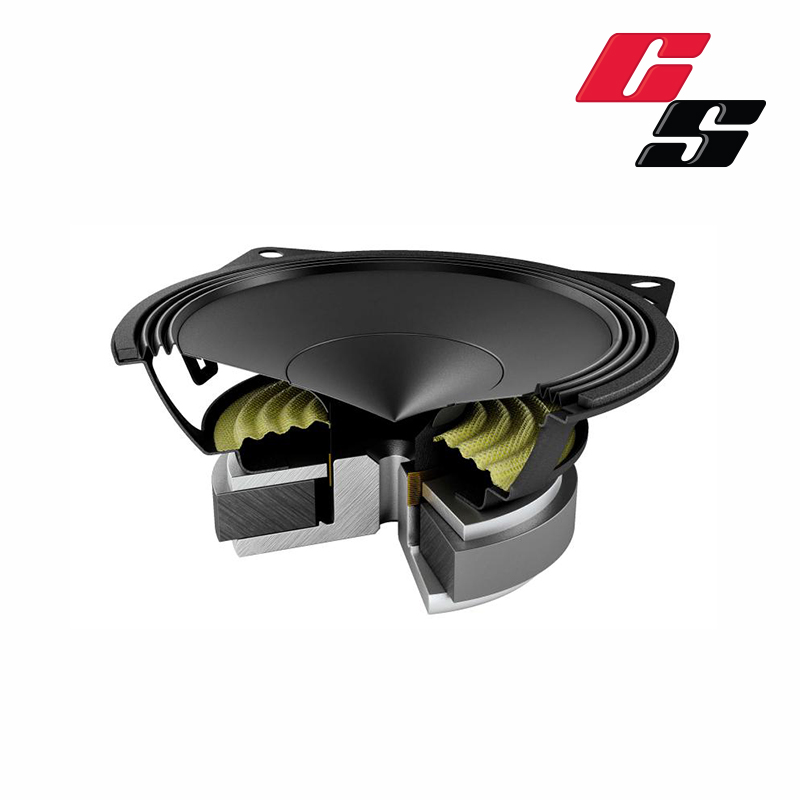 shallow “Triple Wave” profile, for maximum excursion linearity. - 6 Compact basket, protected by abrasion-resistant and scratch-proof