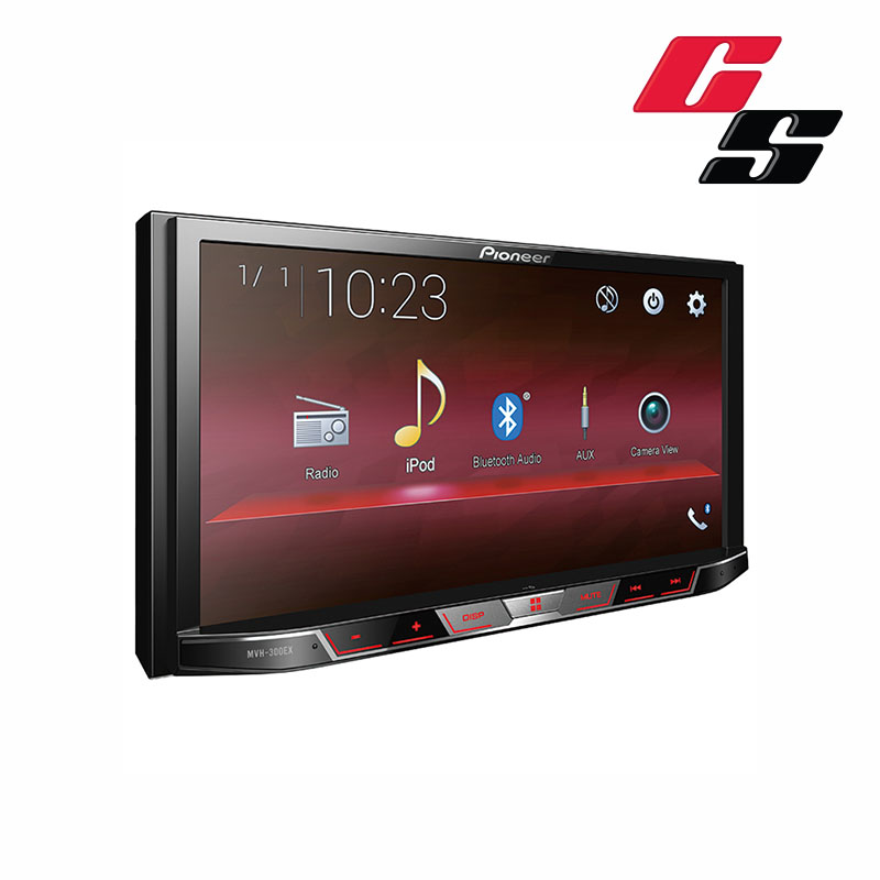 Pioneer’s MVH-300EX is ready to roll with direct connectivity to your iPod or iPhone for music and video via USB interface cable (sold separately) depending on your iOS device. Song, artist, time, and album information are beautifully displayed on the 7″ touchscreen.