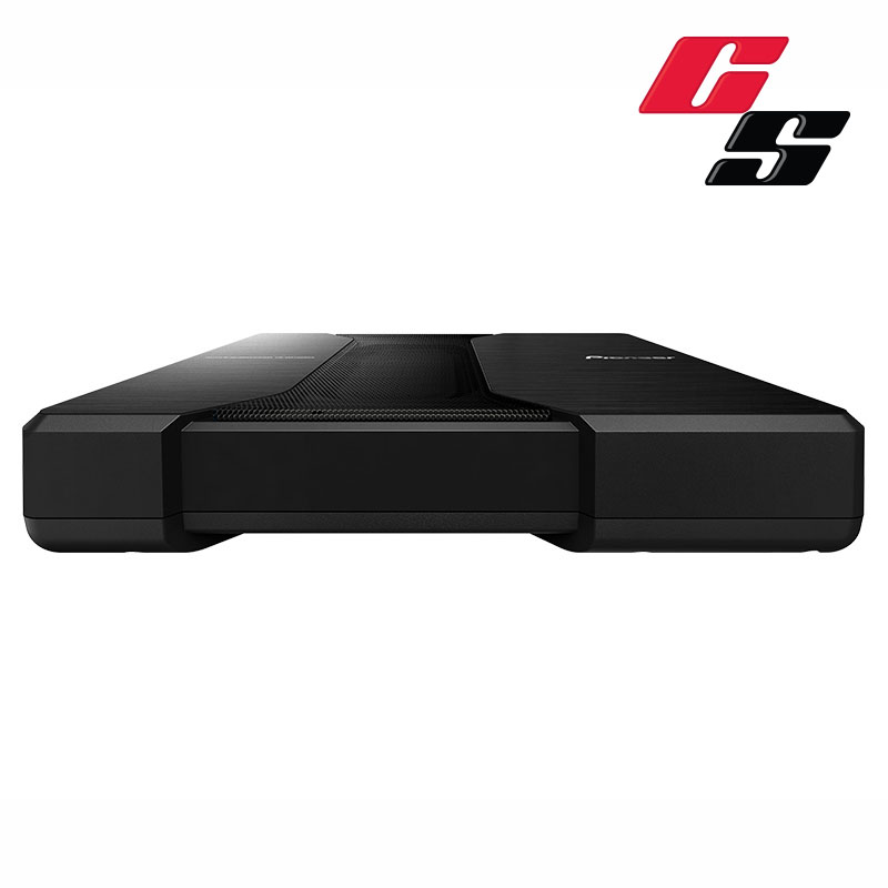 The TS-WH500A amplified subwoofer system is a truly groundbreaking approach in loudspeaker design. HVT technology uses a unique linkage mechanism, which allows the magnet and voice coil of the dual-motor structure to be positioned horizontally to the left and the right side of vertically moving dual speaker diaphragms. Combined, the two diaphragms have an effective surface area equal to a conventional 8″ subwoofer and fire in a bipolar arrangement, increasing output while also canceling destructive vibrations within the enclosure. The result of this innovative technology is a subwoofer system with significantly reduced physical depth while maintaining greater excursion and linearity for superior bass reproduction, natural sound quality, and higher output.
