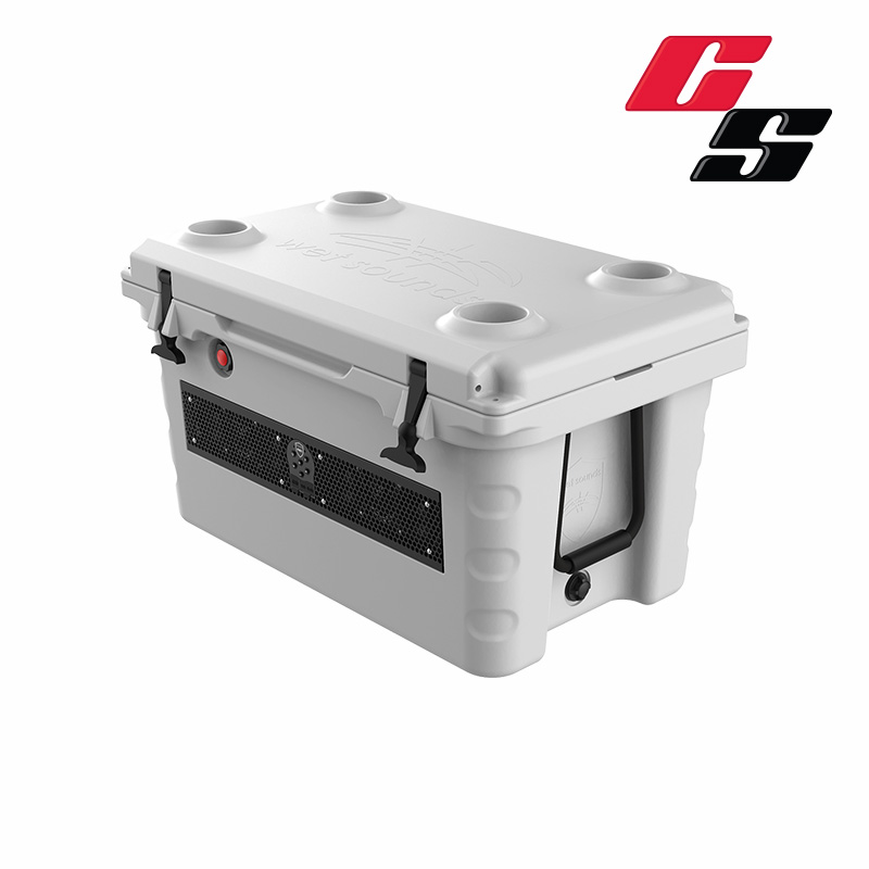 The perfect audio powered cooler for any event or activity is here! The new Wet Sounds Shivr-55 Bluetooth Soundbar Cooler, 200W of precision sound ready to entertain! Over 8 hours of playtime on the built-in lithium-ion battery, 200W internal DSP amplifier that has been tuned to provide the best sound at every volume level. A pressure release valve has also been added so you can relieve that cold pressure prior to opening, Heavy Duty Rope Handles for easy carrying, Rotomolded Construction and Easy Flow drain spout allows you to drain the water while keeping the ice! This 58-quart ice chest will go anywhere you go, tail gate, race track, camping, out on the boat, off-roading, or even a fun BBQ. Check it out now and get ready to experience the Wet Life.